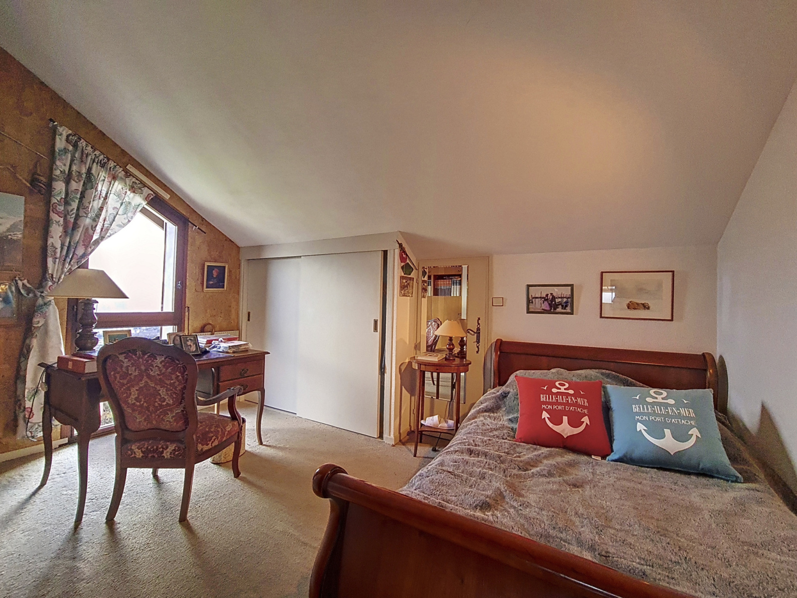 Au 2ème étage vous profiterez du coin nuit avec 2 chambres, un coin bureau, une salle de bain, un wc séparé et du garage attenant (Nous accédons à la maison par le haut).