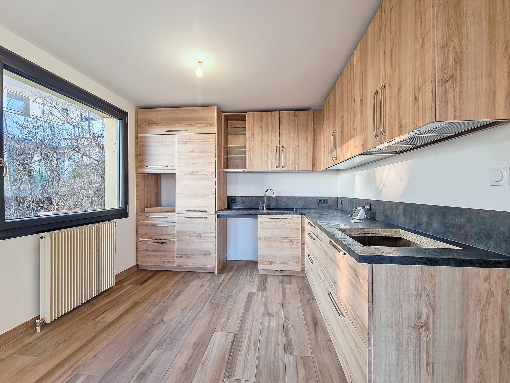 - Une cuisine ouverte sur une belle pièce de vie totalisant 45m² et donnant sur une terrasse de 18m², une chambre avec placard intégré, une salle de douche à l'italienne et meuble double vasque, un wc séparé et de nombreux rangements.